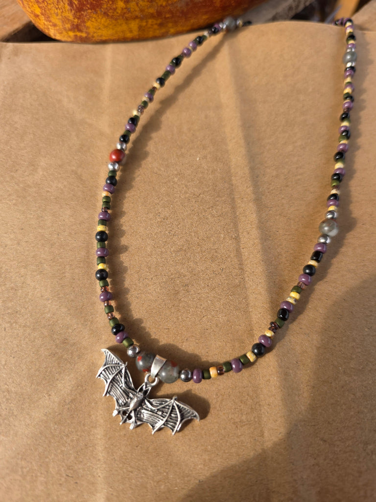 Bloodstone, beading, and .925 Silver bat