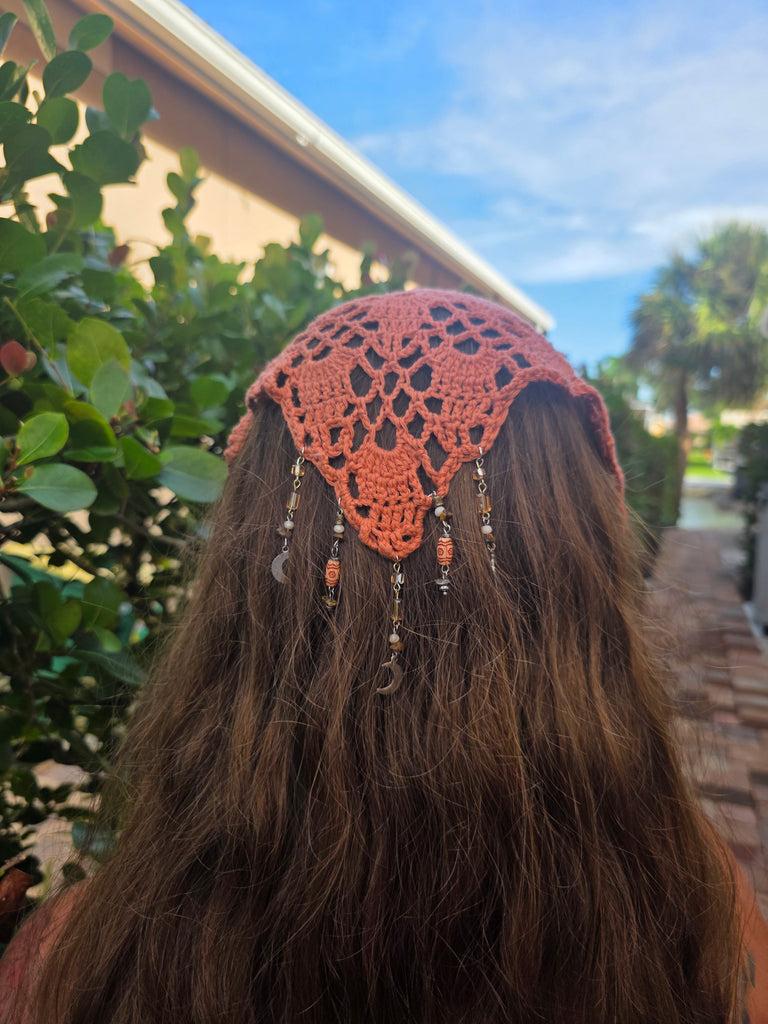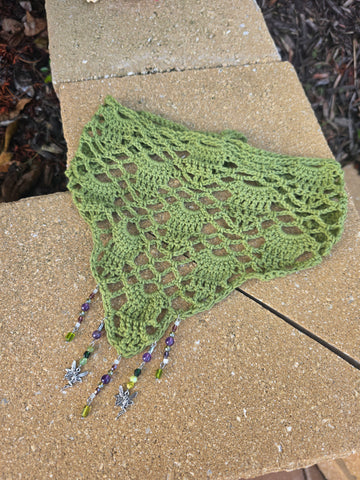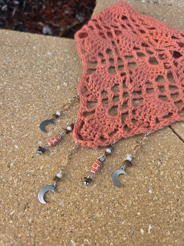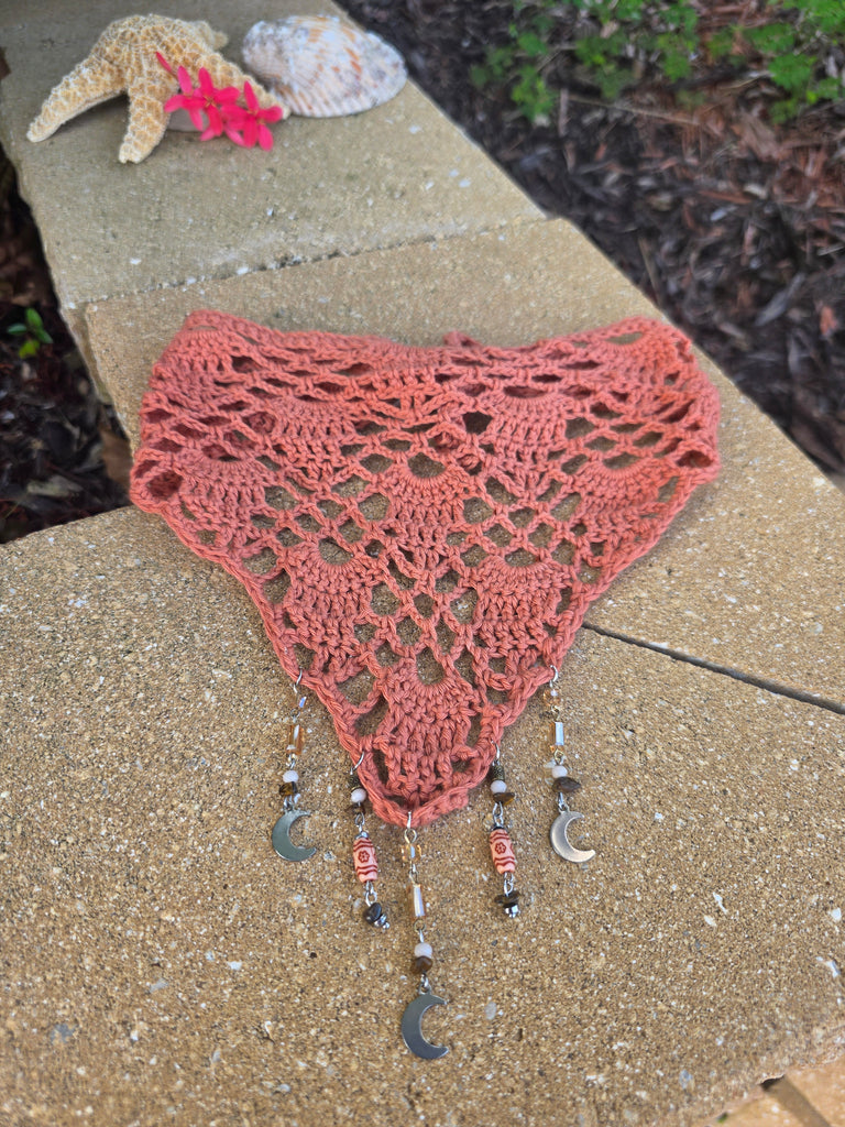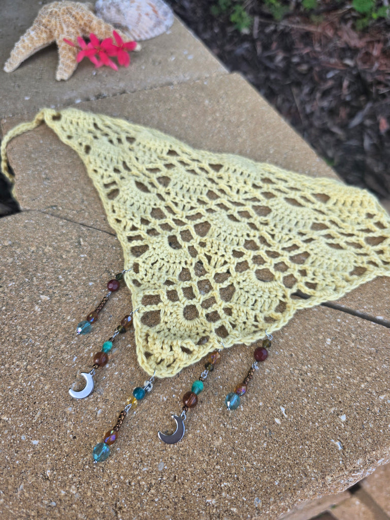 ◇Crochet bandanas with beaded adornments. Upcycled, vintage beads, charms, and various stones/crystals.
