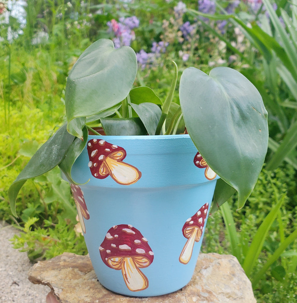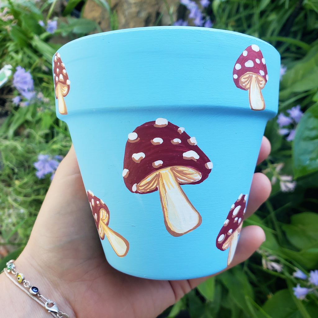 Handpainted terracotta pot, in fun mushroom design 🍄🤍
