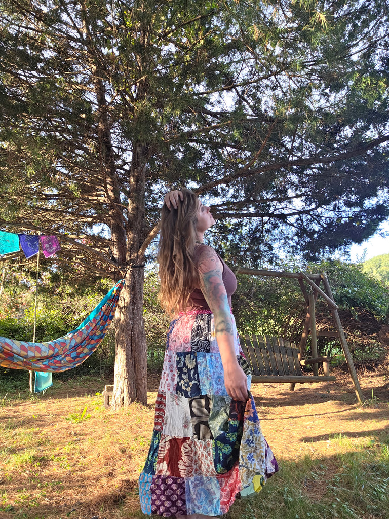 Handmade in India with recycled materials. Each skirt is unique ✨️