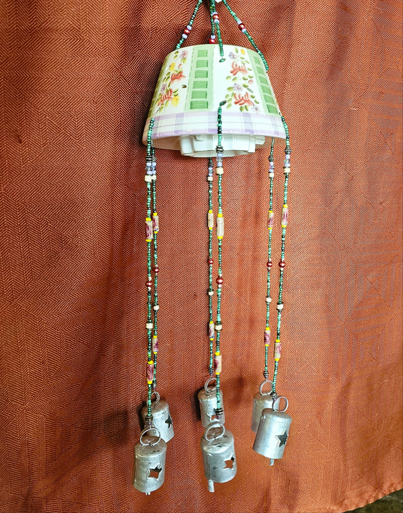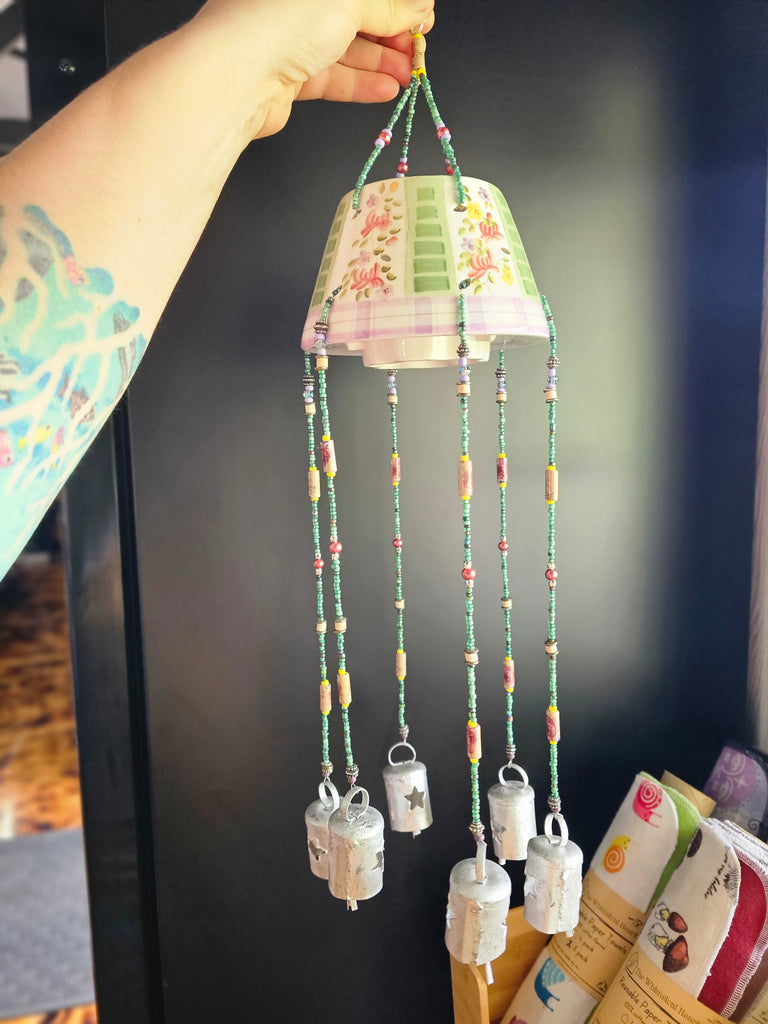 Vintage Candle topper crafted into multi-strand winchime featuring tibetan bells and a variety upcycled beads
