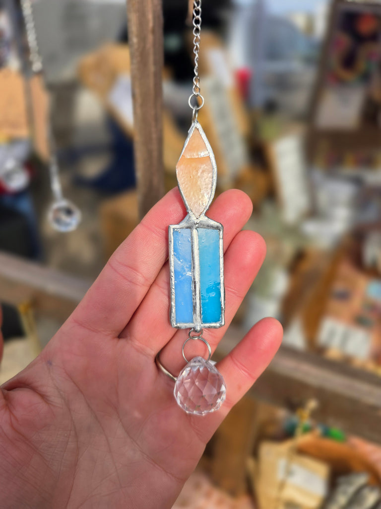 Multifaceted crystal prism suncatcher.